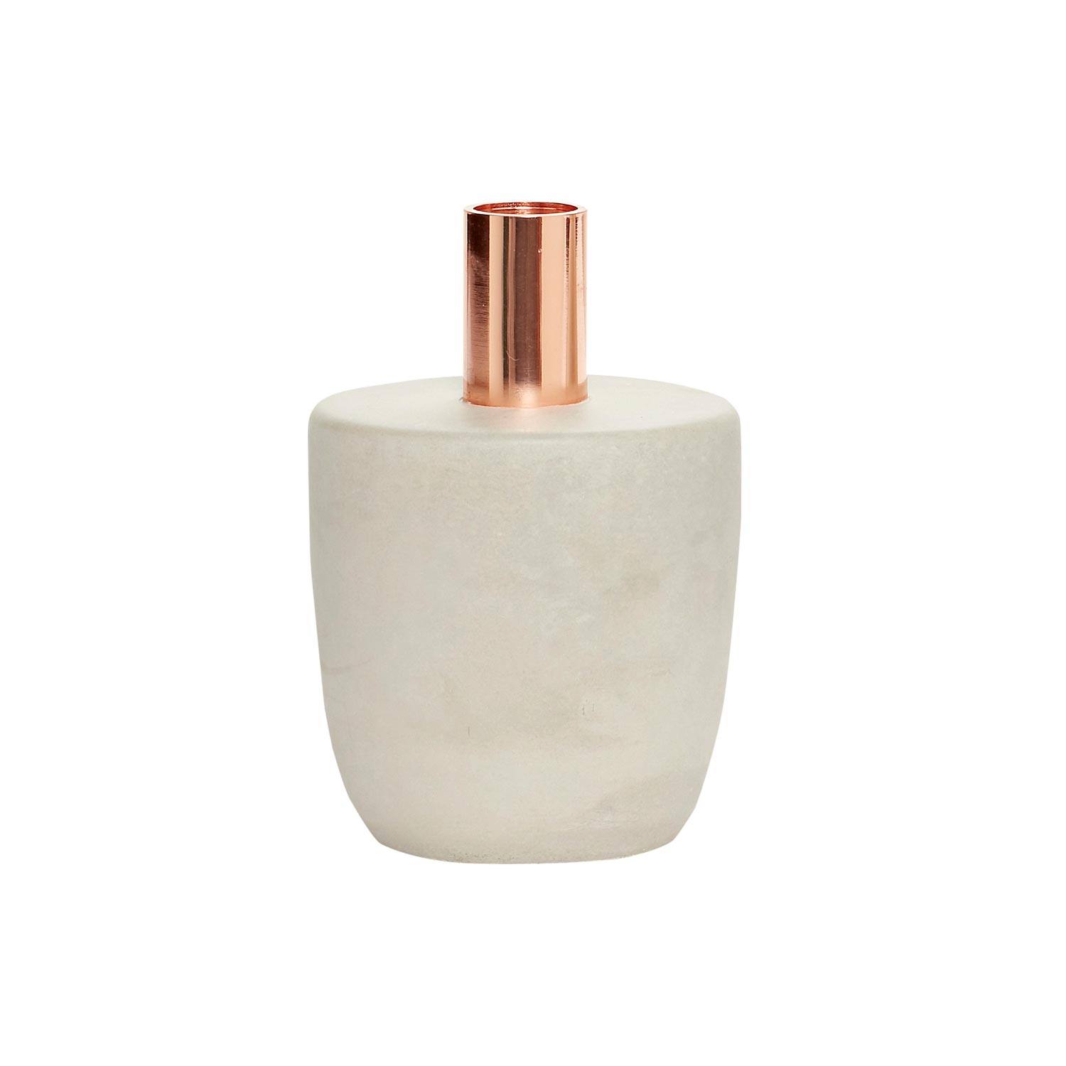 Elegant lysestage fra Hübsch. Specifikationer Materialer Beton, Kobber Farver Kobber Størrelse ø10xh14cm