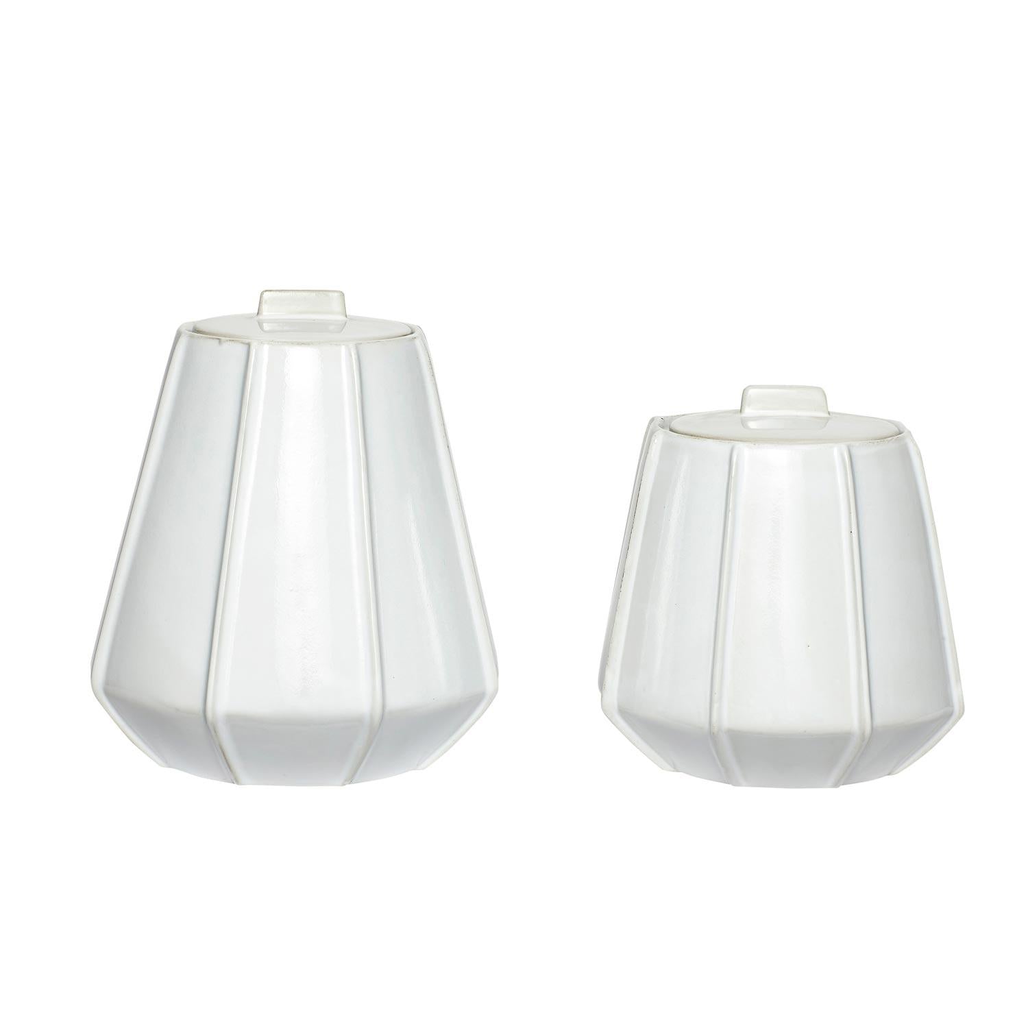 Elegant dåse med låg fra Hübsch. Specifikationer Materialer Keramik Farver Hvid Størrelse ø14xh15, ø17xh19cm