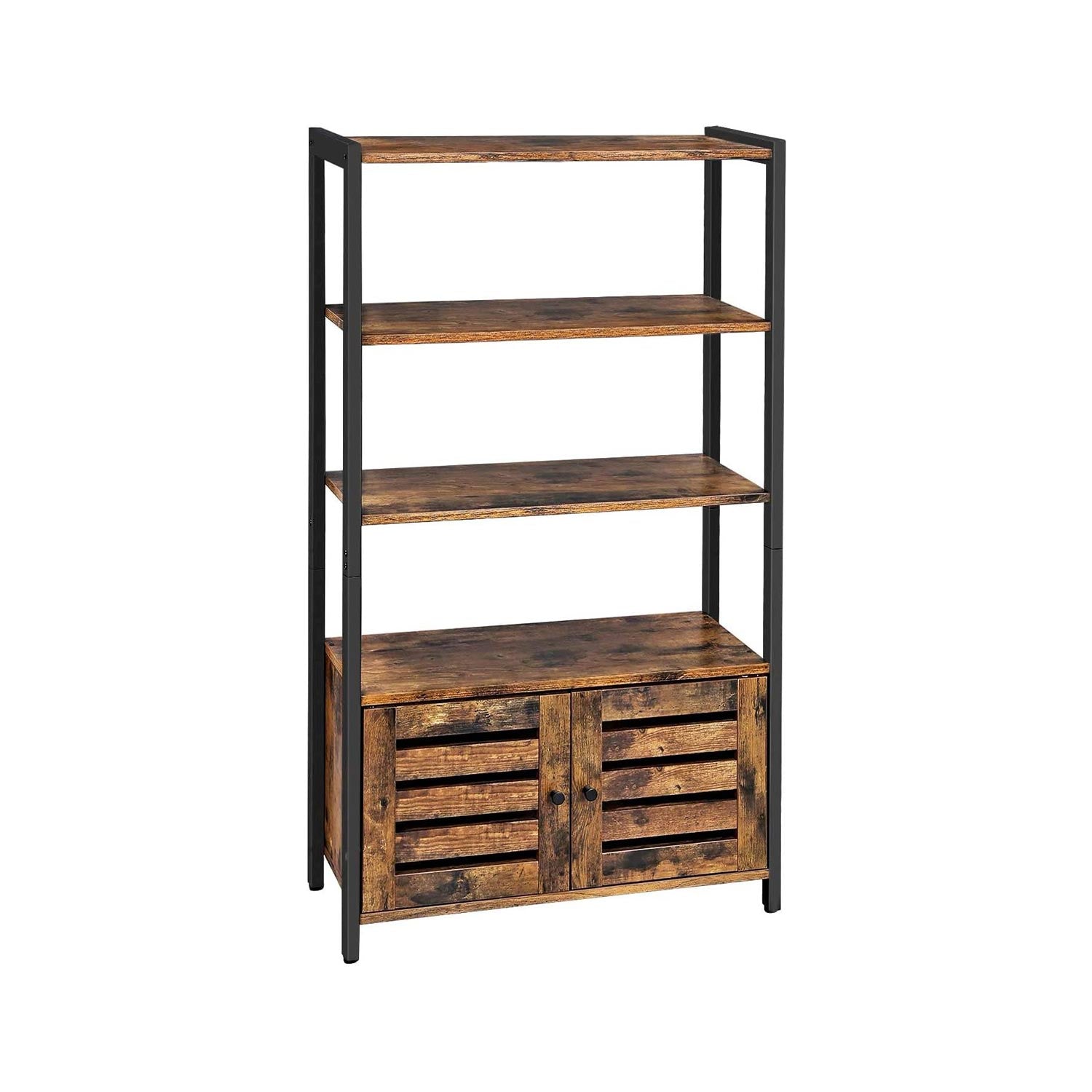Vis med stil: Industrielle stålaccenter og rustikke brune trætoner skaber et varmt og indbydende look med dette opbevaringsskab, der er perfekt til at vise bøger, fotos og meget mere. Hvad gemmer sig bag dørene? Åbn de lamelformede døre for at afsløre et