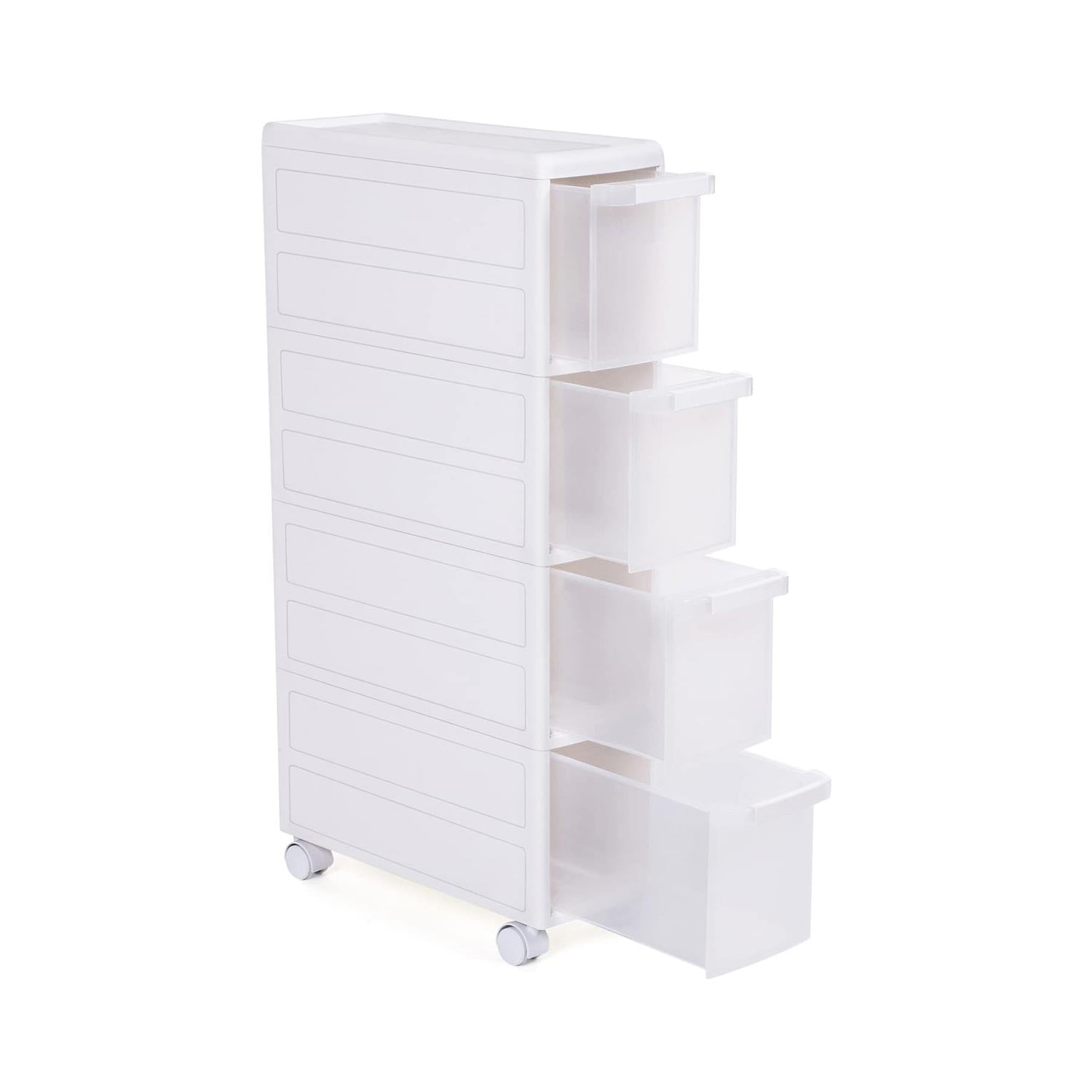 Justerbar struktur – Vores Theresa multifunktionelle rullevogn er en fleksibel opbevaringsenhed, der kan bruges som et 4-etagers skab eller adskilles i to 2-etagers organiseringsenheder. Perfekt til at udnytte enhver trang plads i køkkener, badeværelser o