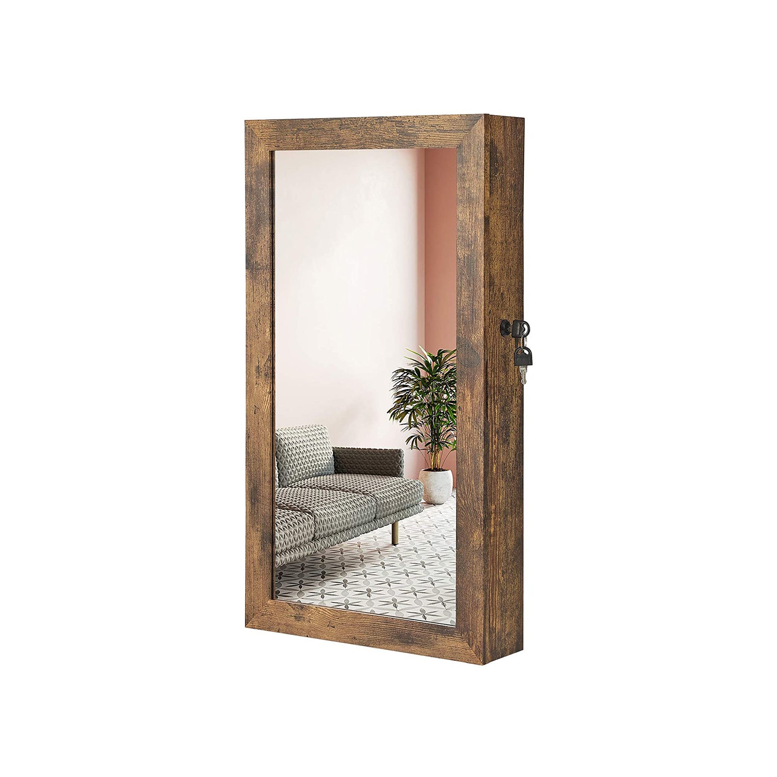 Elegance i Rustik Brun En Stilfuld Erklæring for Dit Smykkeskrin Dette smykkeskab er ikke bare en opbevaringsløsning; det er en stilfuld erklæring. Med sin rustik brune finish tilføjer skabet en charmerende og elegant touch til dit rum. Lad dine smykker v